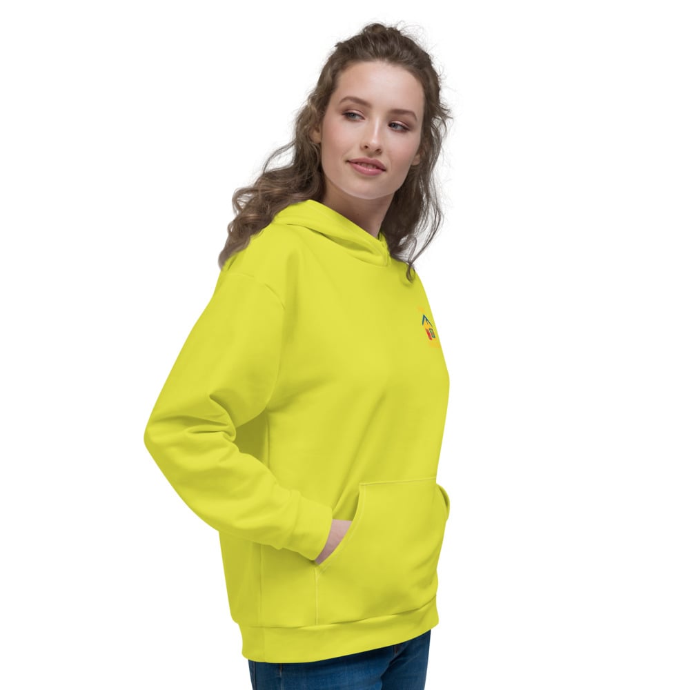 This comfy unisex hoodie has a soft outside with a vibrant print, and an even softer brushed fleece inside. The hoodie has a relaxed fit, and it's perfect for wrapping yourself into on a chilly evening.