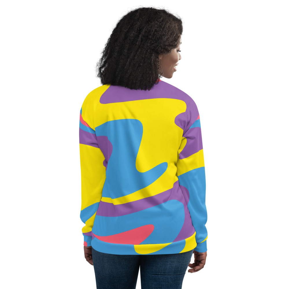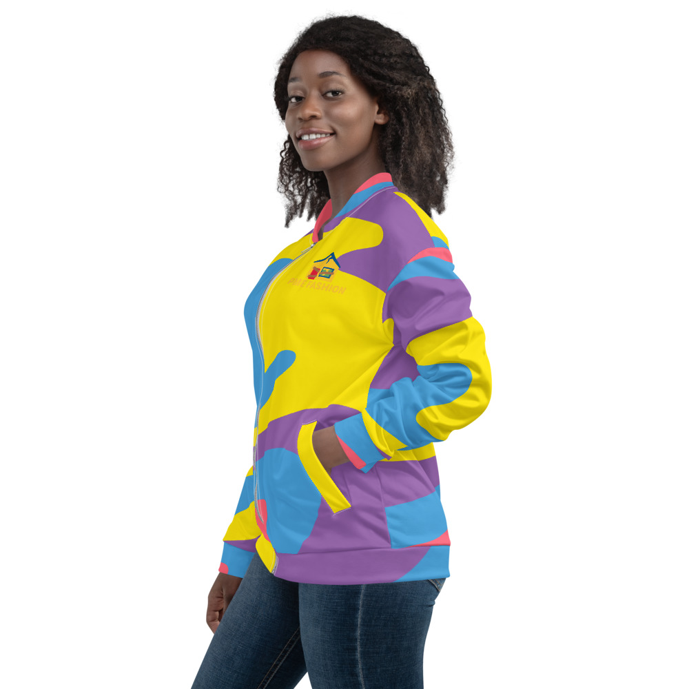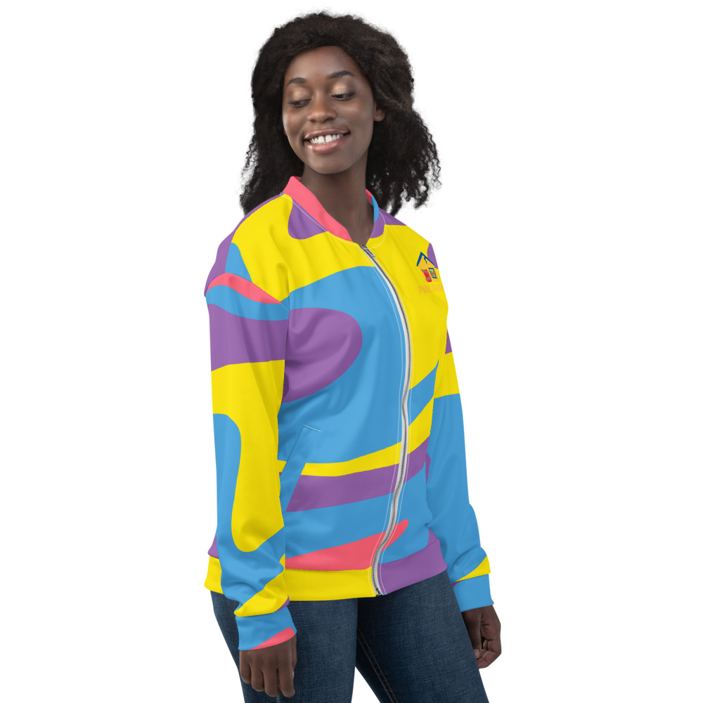 Add a little zing to your wardrobe with this vibrant All-Over Print Bomber Jacket. Wear it on a basic t-shirt, or layer it on top of a warm hoodie—it’ll look great either way. With a brushed fleece inside, and a relaxed unisex fit, this Bomber Jacket is just the stuff of the dreams, so be quick to grab yourself one!